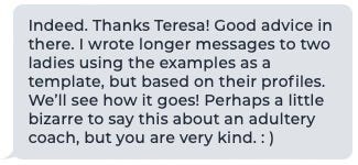 I appreciated that, so sent him a link to my recent story on opening messages to women on Ashley Madison (link below). I then asked him if he read it.