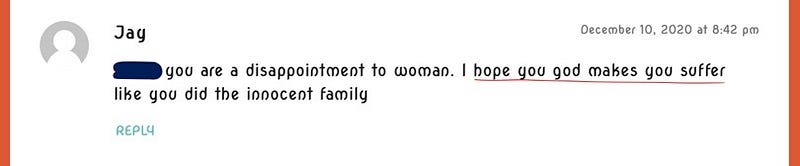 For some reason, many people turn to the bible when they are looking for retribution, but completely forget what Jesus said to the adulteress who was about to be stoned.