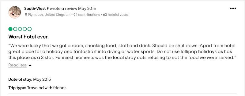 And coming as no surprise to anyone, the hotel is a shit hole, according to this TripAdvisor review from around when Mel stayed there —