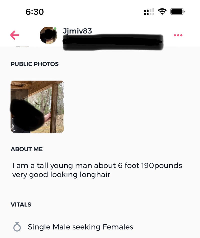 He says, “I am a tall young man about 6 foot 190 pounds very good looking longhair.”