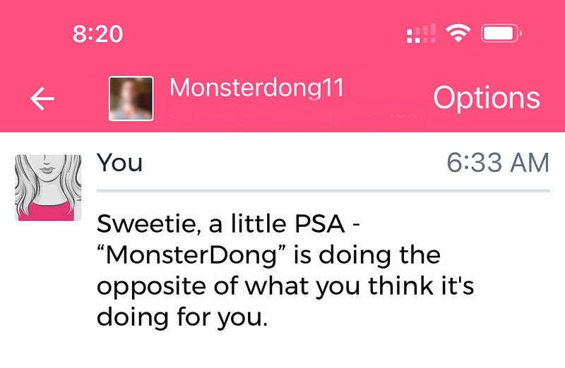 Sweetie, a little PSA — “MonsterDong” is doing the opposite of what you think it’s doing for you.