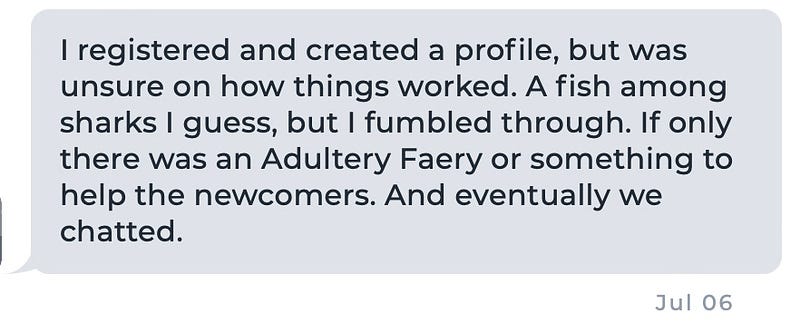 To navigate these complexities, she told him to get “How to Cheat: Field Notes from an Adulteress.” Yes, that book! I was chuffed when he told me that she’d recommended my book, lol. Who wouldn’t be? 🥹